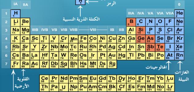 أسماء عناصر الجدول الدوري بالعربي