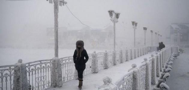 - أويمياكون في روسيا وأقل درجة حرارة سُجّلت فيها كانت 71.2- درجة.