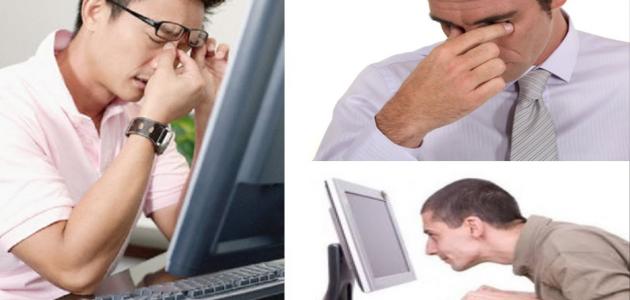 - حدوث تضرّر في العينين؛ حيث إنّ الجلوس لساعاتٍ طويلة أمام جهاز الحاسوب دون الحصول على الراحة يؤدّي إلى تعبٍ وإرهاق وإجهاد في العين.