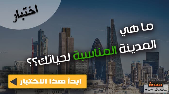 اختبار المدينة الملائمة سوف يحدد إلى جد كبير جدًا المدينة التي تلائم شخصيتك، والتي تتماشي مع أسلوب حياتك وروحك، عن طريق 10 أسئلة سوف نحاول قراءة طريقة تفكيرك وأسلوب حياتك، ومن ثم سوف نخبرك بالمدينة التي تلائم هذا الأسلوب.