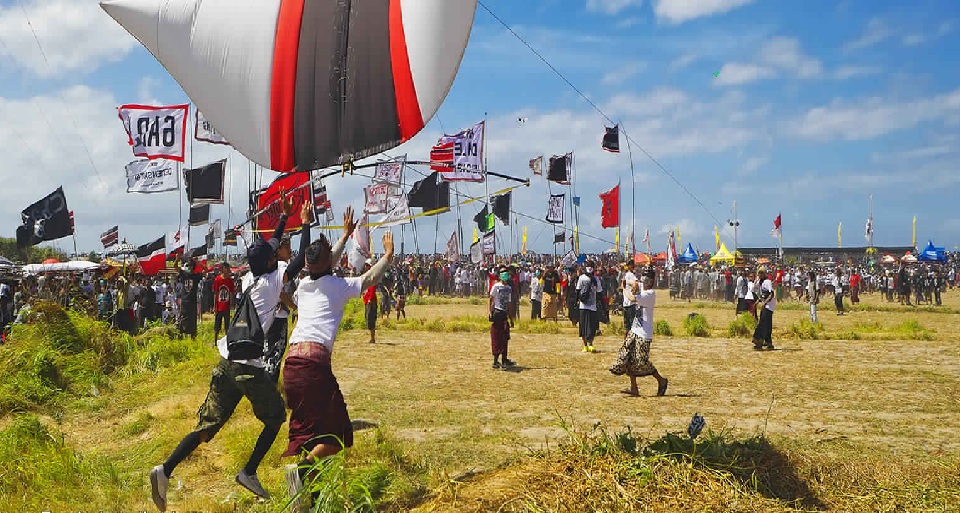 بدأ مهرجان الطائرات الورقية في بالي كمهرجان زراعي موسمي. وقد تم عقده لشكر السماوات على وفرة الحصاد والغلة. أصبحت المهرجانات آنذاك ساحة تنافسية للمجموعات الشبابية “البنجر” المجتمعية ، التي ترسل فرقها “سقا ليلاند” من أجل المشاركة والفوز بأموال الجائزة. عادة ما يتم تنظيم المنافسة “بابتكارات جديدة” للطائرات الورقية. وقد يشمل ذلك أشكال ثلاثية الأبعاد تفصيلية وتصاميم غير عادية ، بدءا من آلهة الهندوس والسيارات والدراجات النارية ، إلى جالبي الحظ ورعاة العلامة التجارية. أوركسترا gamelan ترافق كل فرقة. هذا يضيف إلى بهجة لمهرجان بالي للطائرات الورقية والإقلاع الدرامي.
