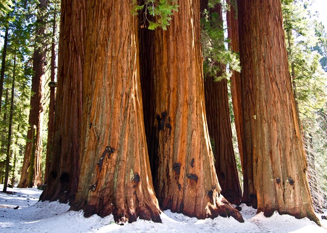 بساتين سيكويا العملاقة هي جزء من غابات سييرا نيفادا الصنوبرية المختطلة، التي تحتوي على أشجار عملاقة، وفي معظم البساتين شجر سيكويا العملاق يكون أقل من أنواع الأشجار الأخرى، ولكنه يكون الأكثر وضوحا، من حيث الجذب البصري بسبب حجمها العملاق، وتنمو السيكويا على المنحدرات الغربية من سييرا نيفادا في ولاية كاليفورنيا فقط، حيث تكون بين 4000 و 8000 قدم ( 1219 و 2438 متر )، ويوجد هناك حوالي 40 بستان للسيكويا العملاقة، ويتراوح عدد أشجار السيكويا في كل بستان من ألف إلى عشرات الآلاف، وبعض البساتين يمكن الوصول إليها برا، في حين أن البعض الآخر بعيد، ويتطلب جهد شاق لزيارته، وتتميز هذه الأشجار الهائلة بمنظر مهيب مع أشعة الشمس التي تجلب الشعور بالسلام .