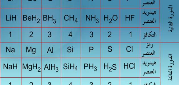 تكافؤ العناصر بالنّسبة إلى الهيدروجين