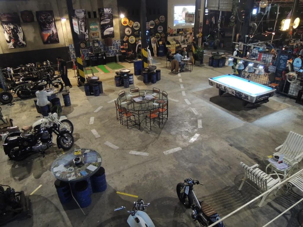 يمكنك إلقاء نظرة من خلال معرض لها من Chevys ، VWs ، توك توك و Vespas. كما تتميز بوجود الـ Hondas الكلاسيكية والدراجات الترابية القديمة والدراجات القديمة ، وكذلك جميع أنواع الكوبر. حتى الجدران مغطاة بالكامل بالتحف ، بما في ذلك آلات الخياطة سنجر ولوحات الأرقام القديمة. يمكنك أيضًا ملاحظة احتمالات وأشياء أخرى ، مثل إعادة استخدام قذائف خوذة قديمة ببراعة مثل أغطية المصابيح والجينز المستخدم كأواني نباتية. تعال يوم الجمعة أو السبت للاستماع لأشرطة صوتية مباشرة على المسرح من الساعة 7 مساءً حيث يتواجد فرقة ناشئة من سانور لموسيقى الروك تعزف كل يوم سبت في هذا التوقيت.