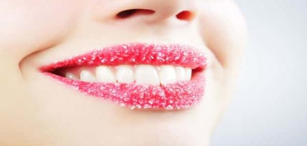 - أولًا يجب تقشير الشفاه جيدًا وذلك باستخدام فرشاة الأسنان المخصصة لذلك، فهذه تعدّ أفضل الطرق التي من الممكن التخلص بواسطتها من القشور والجلد الميت، ثم بعد ذلك يتم وضع القليل من العسل والسكر على الشفاه، ثمّ تدلك الشفاه بحركات دائرية هادئة، وتشطف بالماء الفاتر.