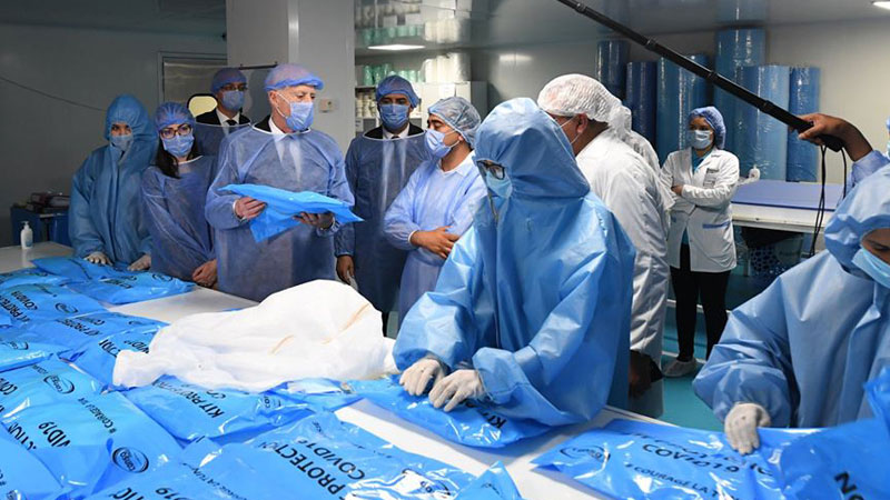 أدى رئيس الجمهورية قيس سعيد مساء اليوم الخميس 16 أفريل 2020 زيارة إلى وحدة صناعية للكمامات وملابس الوقاية الطبية بالمنطقة الصناعية بمدينة القيروان. واطلع رئيس الدولة على مختلف مكونات هذه الوحدة الصناعية التي دخل عمالها وعاملاتها والمسؤولون عنها، بشكل تطوعي، في عزل ذاتي تام منذ يوم 20 مارس الماضي من أجل توفير المستلزمات الطبية والوقائية اللازمة للإطارات والعاملين في الصف الأول لمقاومة تفشي انتشار جائحة كورونا . وقدم مدير عام هذه الوحدة الصناعية السيد محمد العلويني لمحة لرئيس الدولة عن عمل المؤسسة ومنتوجها الذي تم تسخيره للمؤسستين الأمنية والعسكرية، مؤكدا استعداد كل العاملات والعاملين للمساهمة في معاضدة مجهودات الدولة وتوفير أكبر عدد ممكن من الكمامات بالخصوص في الفترة القادمة إلى غاية عودة الحياة إلى نسقها الطبيعي. وأسدى رئيس الجمهورية تشجيعاته لكل بنات وأبناء هذه المؤسسة من شباب تونس الذين أثبتوا، قدرة على رفع التحديات التي تواجهها بلادنا، كما أثبتوا تحليهم بروح وطنية عالية، مؤكدا على أهمية مساهمة الجميع كل من موقعه في مقاومة جائحة كورونا وعلى ضرورة وضع حد للمضاربات المتعلقة بتسويق هذا المنتوج وعدم استغلال الظرف الصحي الذي يعيشه التونسيون.