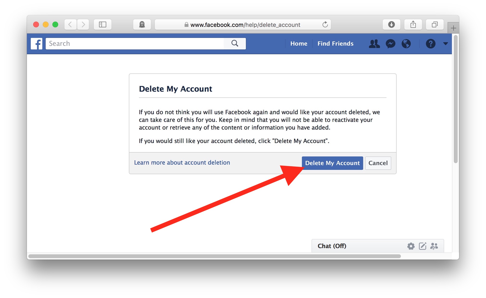 1- قم بالضغط على الرابط التالي الذي سيمكنك من حذف حساب الفيس بوك بصورة نهائية : https://www.facebook.com/help/delete_account .