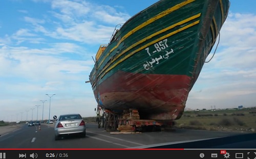 سفينة صيد متوقفة على الطريق بين الدار البيضاء والمحمدية