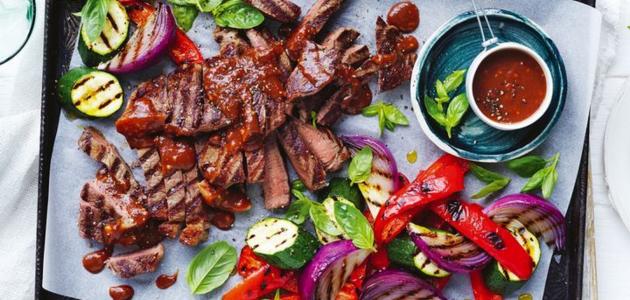 القيمة الغذائية لشرائح الستيك مع الشمندر وصلصة الكريم