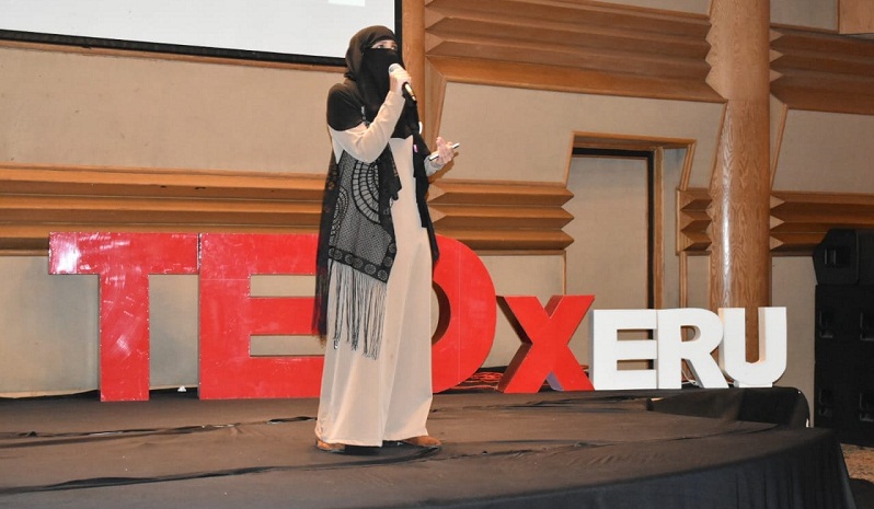وأضافت “وأقولهم أنا وقفت على ستيدج (مسرح) منصة عالمية وعرضت فكرتي و”محصلش حاجة” وقدرت أوصل فكرتي زي أي رجل أو بنت مش محجبة أو محجبة”!