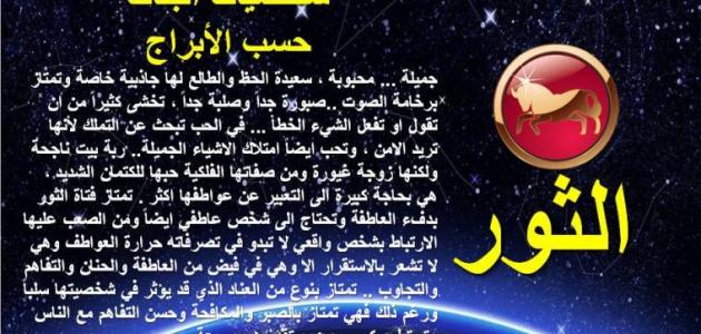برج الثور هو أحد الأبراج الأرضية، ويولد أصحاب هذا البرج بين 20 من شهر نيسان إلى 20 من شهر أيّار، وهو البرج الثاني في دائرة الأبراج الفلكيّة، ويتوافق مع برجي العقرب، والسرطان ويحكمه كوكب الزهرة، وأرقام الحظّ هي: 2، 6، 9، 12، 24، ويتّصف عموماً مواليد هذا البرج بأنّهم عمليون للغاية ومستقرون ويتميّزون بحبّهم الكبير للحب، وقد يتوافقون بشدة مع برج العقرب، وبرج السرطان، كما أنهم يحبون الألوان الوردية، ويحبون العمل في مجالات الطبخ، والموسيقى، ولكن وجب التنويه إلى أن هذه الصفات قد لا تنطبق على جميع مواليد هذا البرج.[١]