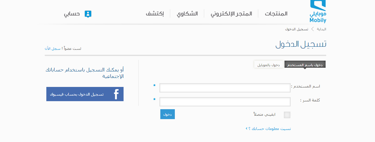 يمكنك الدخول على الموقع الخاص بشركة موبايلي الإلكتروني، وبعد ذلك تسجيل الدخول في “حسابي” في حالة إن كان لديك حساب سابق، وإذا لم يكن لك حساب يمكنك تسجيل الدخول لأول مرة وبعد ذلك يمكنك القيام بالتحويل واتباع الإرشادات.