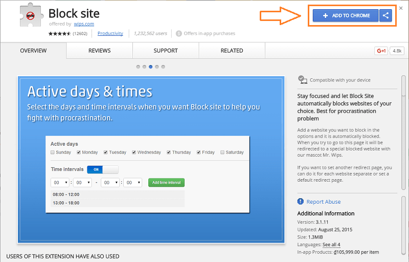 – قم بالضغط على هذه الاضافة لتظهر لك الصفحة الخاصة بالاداة و التي توضح جميع المعلومات الخاصة بها و ايضا ستجد بها خانة محددة لاضافة بها المواقع الالكترونية التي تريد حظرها ، قم باضافة رابط الموقع الذي تريد حظره و قم بالضغط على زر ” Add Site ” لكي يتم اضافته الى قائمة حظر المواقع .