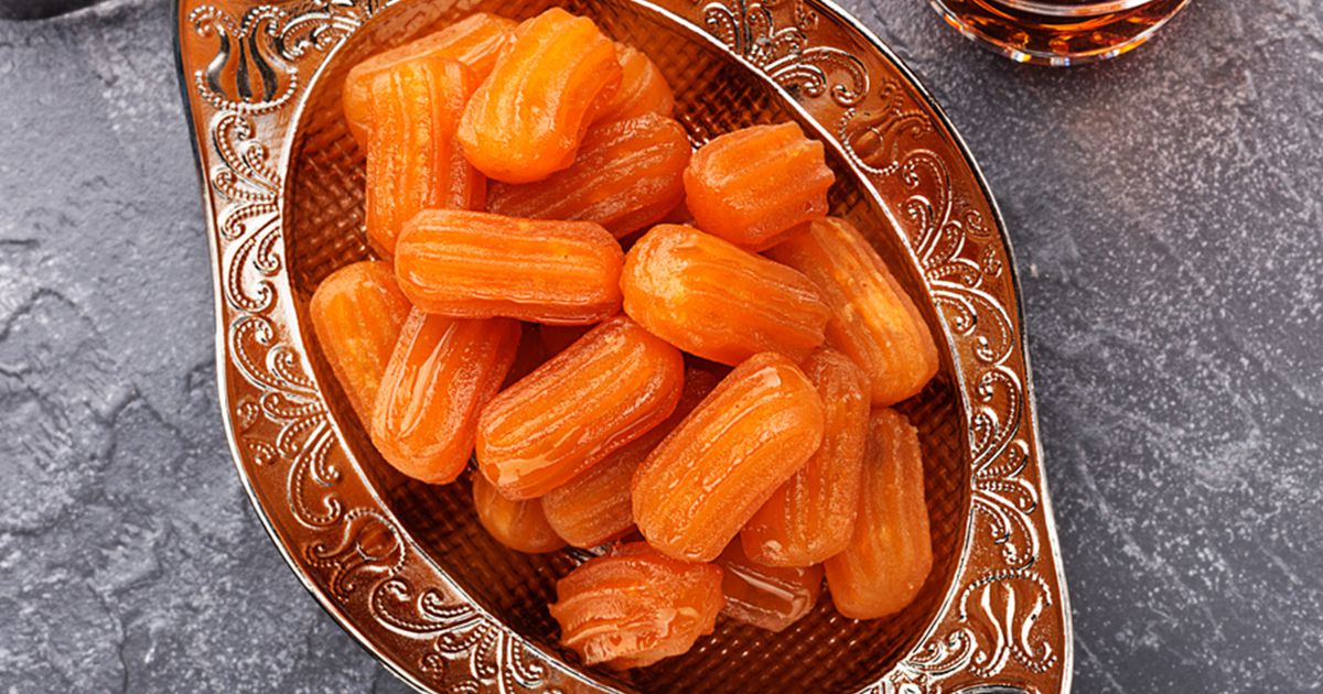 8- أكملي حتى نفاذ الكمية، صفي البلح من الزيت واسقيه بالقطر البارد، ثم قدمي بلح الشام على سفرتك.