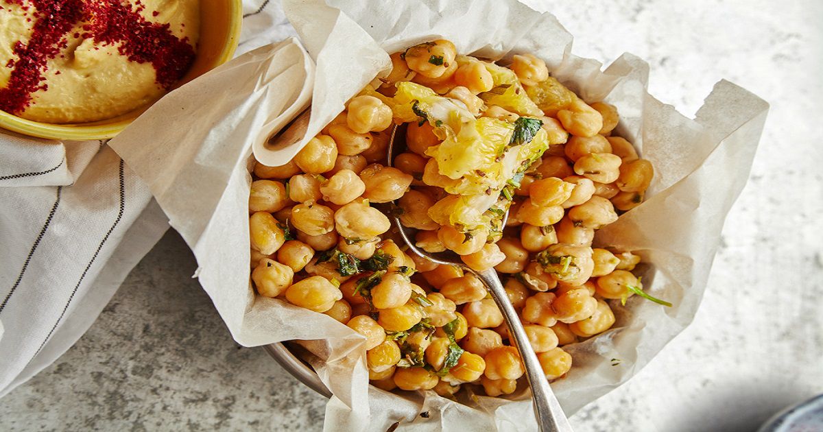 4- اهرسي البعض من حبات الحمص بواسطة شوكة.