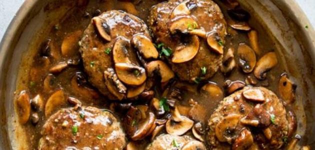 - قلي شرائح البصل وشرائح المشروم وشرائح الفلفل الأخضر في الزيت حتى يتغير لونها ويصبح باللون الأحمر، ثم إضافة المكوّنات إلى خليط اللحمة والصوص، مع التقليب.