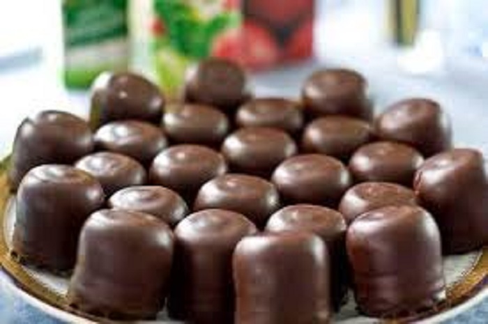 - نغلفها بالشوكولاتة الذائبة ونرش عليها حبوب الفارمسيلي الملونة حسب الرغبة .