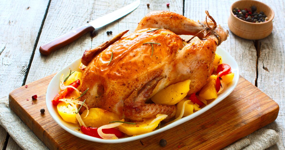 8-غطي الصينية بورق القصدير وأدخليها الى فرن محمى مسبقاً على حرارة 200 درجة مئوية لحوالى ساعة حتى تنضج الدجاجة.