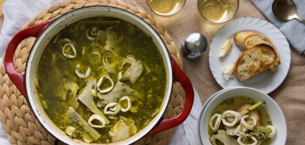 عند شراء الكاليماري أو الحبّار يجب البحث عن الحبات الصغيرة والعيون الصافية، فالكاليماري الصغير يكون ليّنًا أكثر، ويدخل الكاليماري في العديد من الوصفات اللذيذة، وأشهرها حلقات الكاليماري المقليّة، وهي من المقبلات اللذيذة والمقرمشة، وشوربة الكاليماري من المقبلات اللذيذة أيضًا، وفيما يأتي طريقة عمل شوربة الكاليماري خطوةً بخطوة: