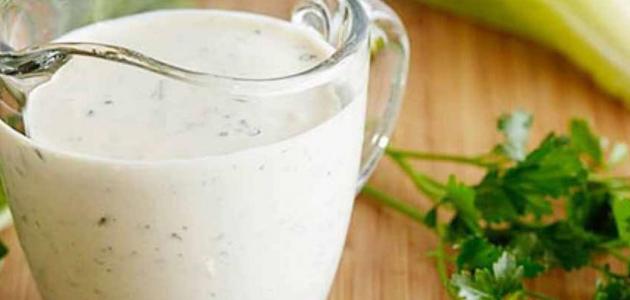 - تُوضع المكونات الرئيسة لصوص الرانش وهي اللبن والمايونيز في وعاء عميق وذي حجم مناسب؛ وتُخفق جيدًا حتى تتجانس.