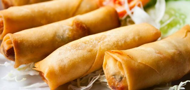 - تؤخذ حبّة من العجين وتحشى باللحم وتلف على شكل اسطوانة.