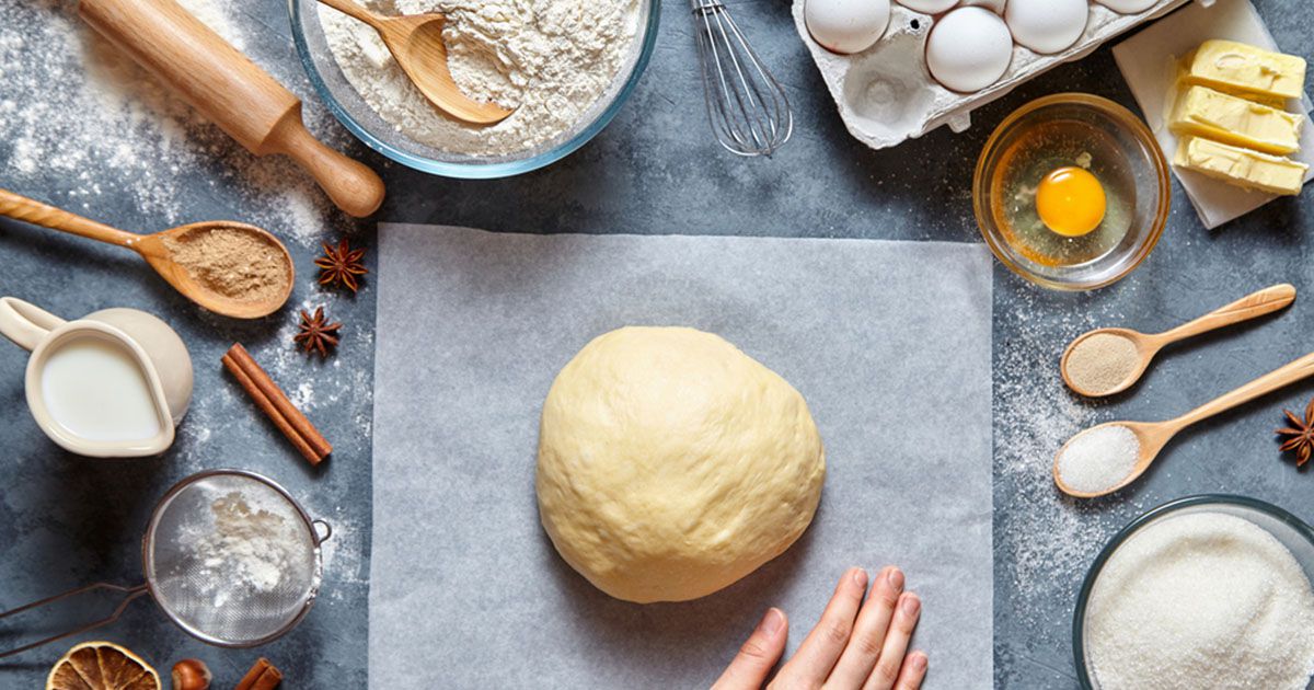 1- في وعاء، أخلطي الدقيق، الملح، السكر والخميرة.
