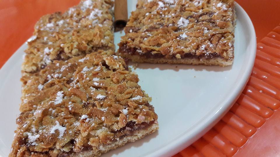 - ثم بالمبشرة نبشر الجزء المتبقي من العجينة ليغطي الوجه كله او ممكن رقه و تقسيمه مستطيلات و نعمل مثل الشبكة