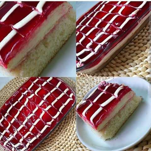 ٢- بعد ماتنضج الكيكه تتشرب بنص كاسه مويا مخلوطه مع ٣ ملاعق شراب توت او فيمتو