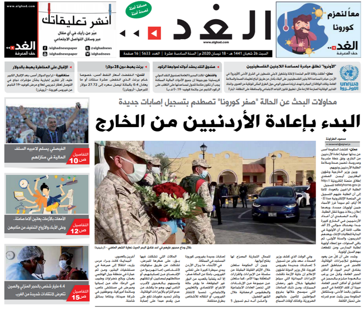 للاطلاع على عدد “الغد pdf” ليوم السبت 18 نيسان/ابريل 2020، يرجى الضغط هنا.