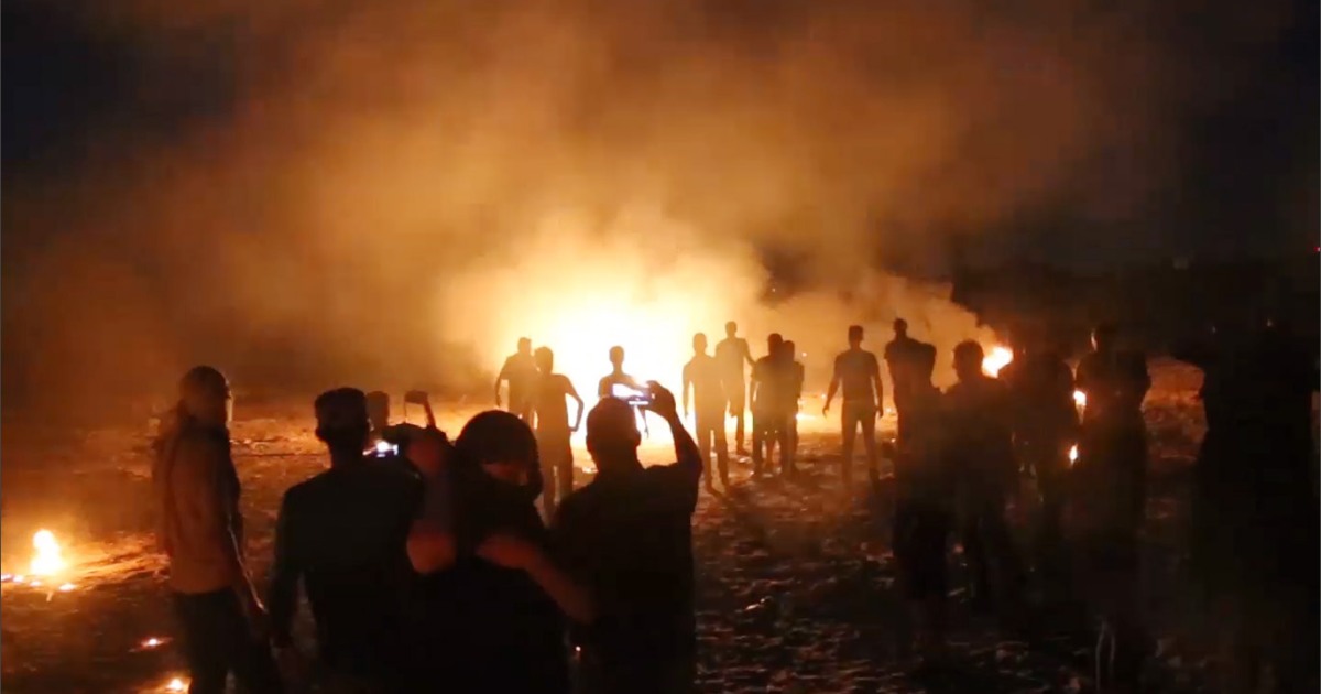 #صور| فعاليات “الإرباك الليلي” قرب السياج الفاصل بمخيم العودة في منطقة “ملكة” شرق مدينة غزة pic.twitter.com/o1jVLhaLEi