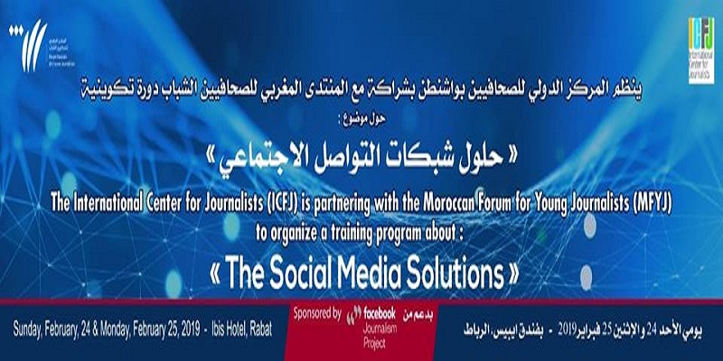 ينظم كل من “المنتدى المغربي للصحافيين الشباب” و “المركز الدولي للصحافيين” بواشنطن، بدعم من “الفيس بوك”، دورة تكوينية حول موضوع “برنامج حلول شبكات التواصل الاجتماعي” لفائدة 60 صحافية وصحافي مهني”.