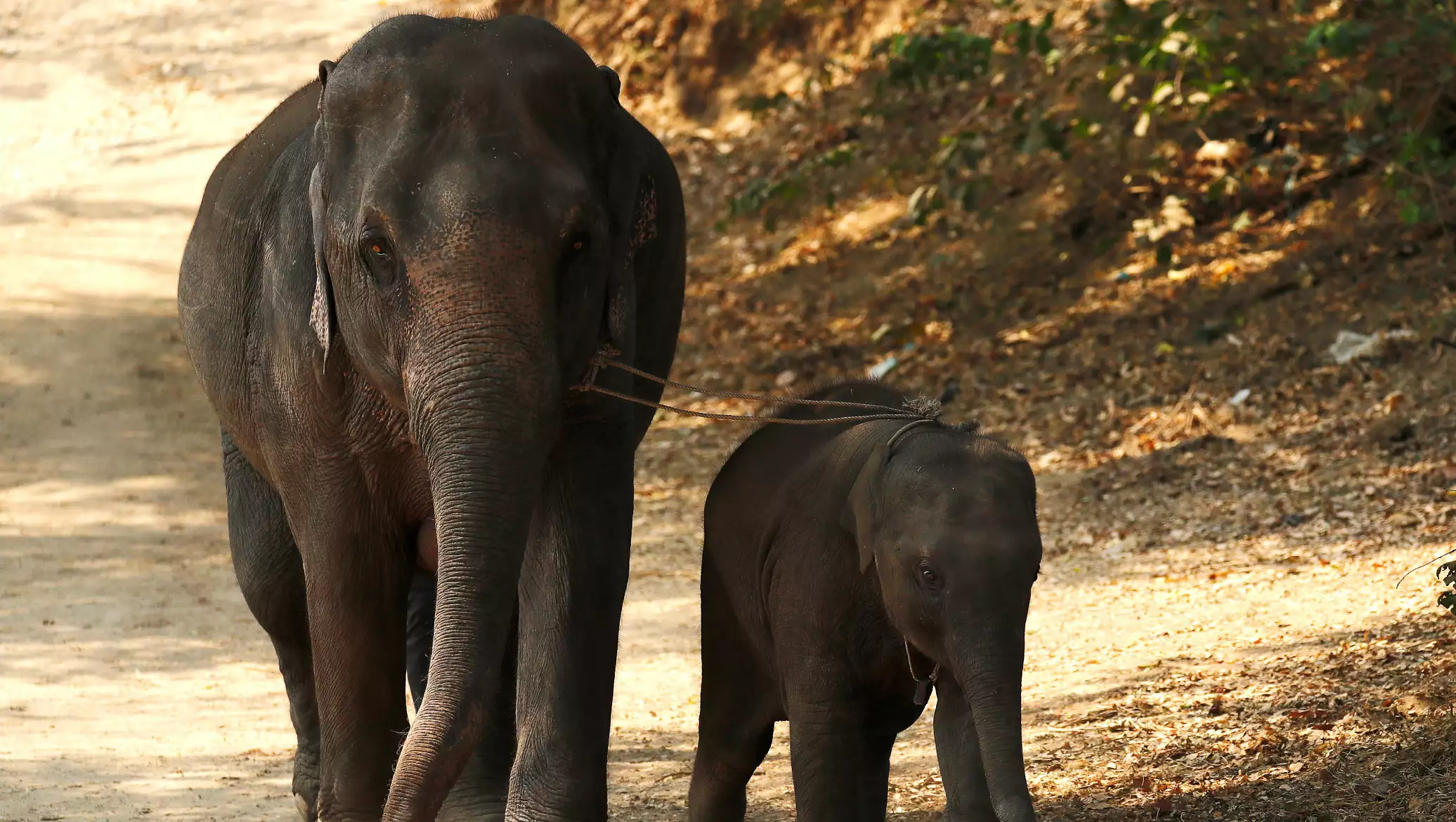 ويظهر مقطع الفيديو 5 أفيال إناث بالغات تحركن وقمن بعمل دائرة حماية حول فيل صغير يبلغ من العمر عام واحد، وذلك مع بدء انطلاق صافرات الإنذار، وتمسكن بموقعهن رغم سماع أصوات انفجارات في السماء.