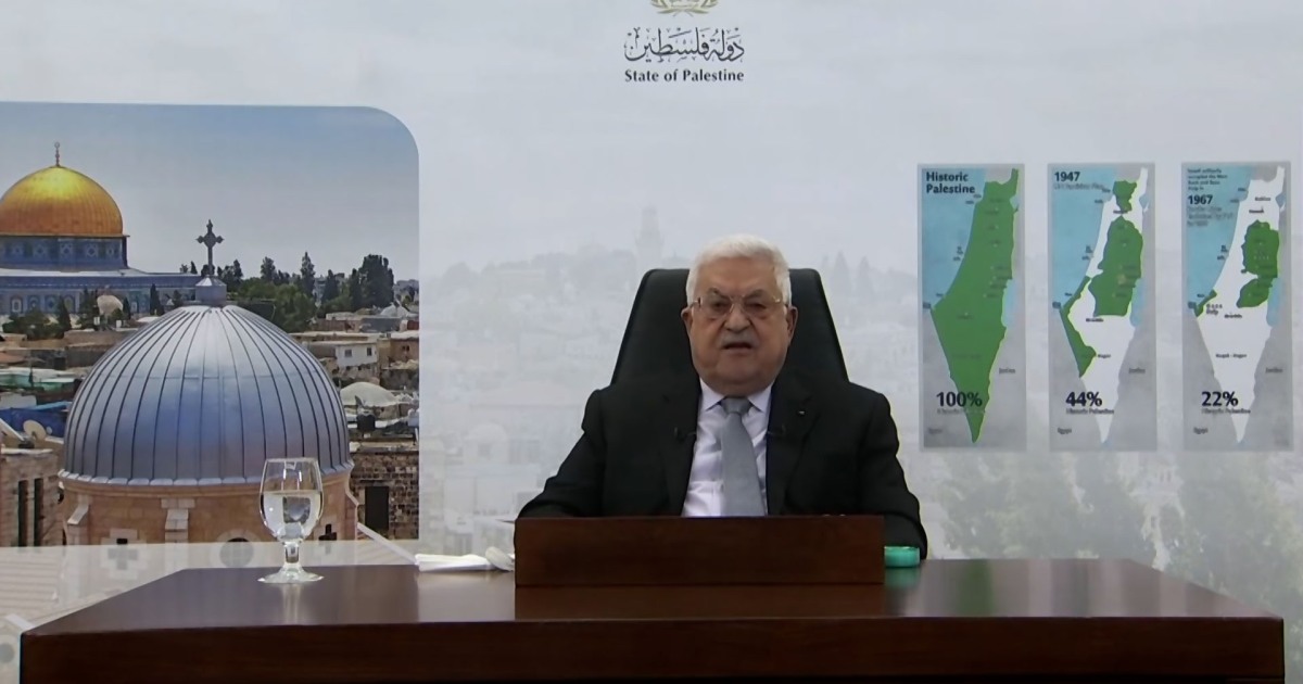 ولوح عباس بسحب الاعتراف بإسرائيل، في حال عدم انسحابها من الأراضي الفلسطينية ومنع تحقيق حل الدولتين. كما هدد بالتوجه إلى محكمة العدل الدولية، من أجل اتخاذ قرار حول شرعية وجود الاحتلال على أرض دولة فلسطين، وحسم المسؤولية المترتبة على الأمم المتحدة والعالم إزاء ذلك.
