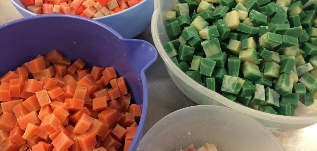 - جمع قطع الصابون؛ ففي البداية يتم جمع قطع الصابون المَرغوب بتذويبها وتصنيفها حسب الرغبة.