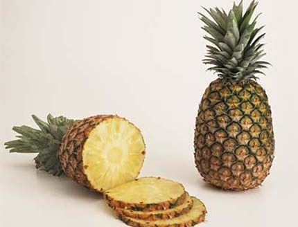 - 2- تفحص ثمرة الاناناس : – اذا يجب ان يكون لونها اخضر من جميع الجوانب بالكامل و من اسفل ذات لون ذهبي و يراعي الابتعاد عن الثمرة التي بها كدمات واضحة .