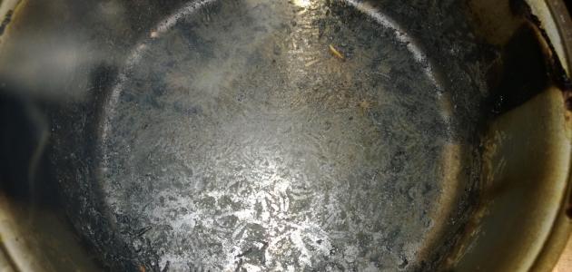 - يُضاف الماء والقليل من صابون غسل الصحون إلى القدر المحترق، ويوضع على نار هادئة لفترة من الوقت.