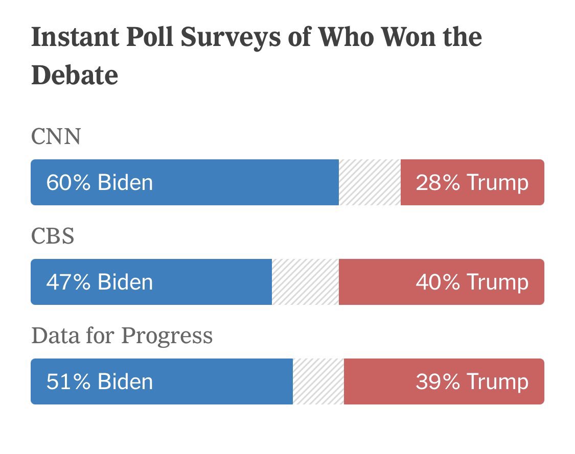 وفي الواقع، فقد رصدت مواقع أمريكية تفضيل أغلب من شاهدوا المناظرة الأولى أداء بايدن على حساب ترامب، رغم إجماع المراقبين على وصف مجرياتها بـ”الفوضى”.