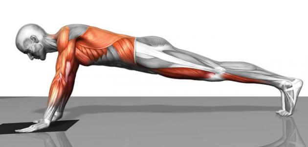 - تمرين البلانك (بالإنجليزيّة: Planks)؛ يستلقي الشّخص على الأرض، وكأنَّه يُريد القيام بتمرين الضّغط، إلّا أنّه يثبت جسمه باستخدام مرفقيه، ويبقى في هذه الوضعيّة لمُدّة 30 ثانية على الأقلّ، مع الحفاظ على استقامة الظّهر.