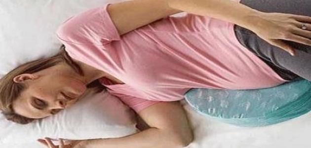 عادةً ما تعاني الحامل من آلام الظهر مع الدخول في الشهر الخامس من الحمل، وبالتالي فإن النوم على ظهرها سيكون أمراً صعباً ومؤلماً، بالإضافة إلى ما الخطورة التي تصاحب هذه الوضعية على صحة الأم والجنين نتيجة الضغط الذي تولده على كل من الشريان الأبهر والأوعية الدموية الواقعة في منطقة الظهر وتقييد عملها في نقل الدم إلى الساقين والقدمين، وإبطاء الدورة الدموية بشكل عام، بالإضافة إلى خطورة النوم على المعدة نتيجة الضغط الذي تولده على االوضعية على كل من الرحم والرئتين، أما أفضل وضعية للنوم تكون من خلال الاستلقاء على الجانب الأيسر للجسم، وتثبيت وسادة ما بين الركبتين، ووسادة أخرى تحت البطن، ويمكن استخدام وسائد عادية، أو الحصول على الوسادة الطويلة الخاصة بنوم الحامل.[٢]