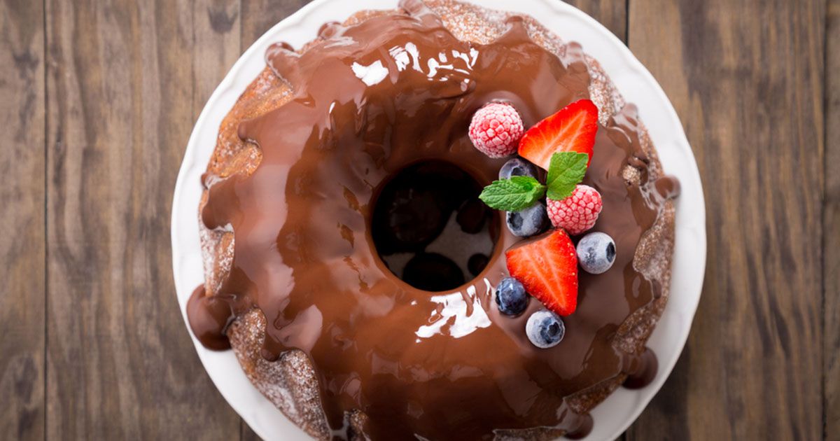 5- زيّني وجه الكيك بالشوكولاتة المذوبة. أدخليه إلى الثلاجة حتى يبرد.