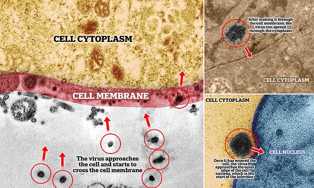 شاهد من مجهر إلكتروني أول رصد للفيروس وهو يمسك بالخلية