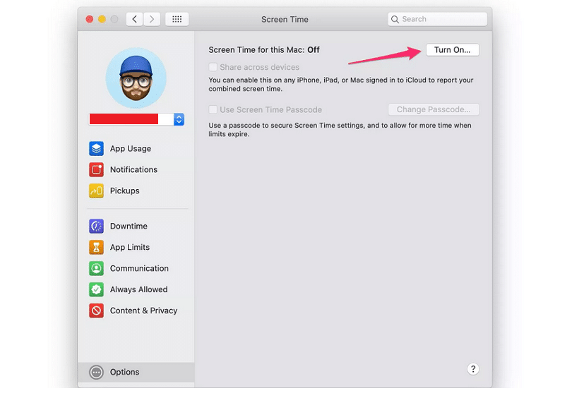 • اختر (تشغيل وقت الشاشة) Turn On Screen Time.