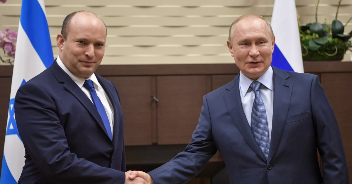 يجري الرئيس الروسي فلاديمير بوتين لأول مرة مباحثات مع رئيس الوزراء الإسرائيلي نفتالي بينيت في منتجع سوتشي غربي روسيا، وتتطرق المباحثات للوضع في سوريا والملف النووي الإيراني، وقال بوتين إن ثمة نقاط تقاطع وفرصا للتعاون مع إسرائيل في قضايا مكافحة الإرهاب.