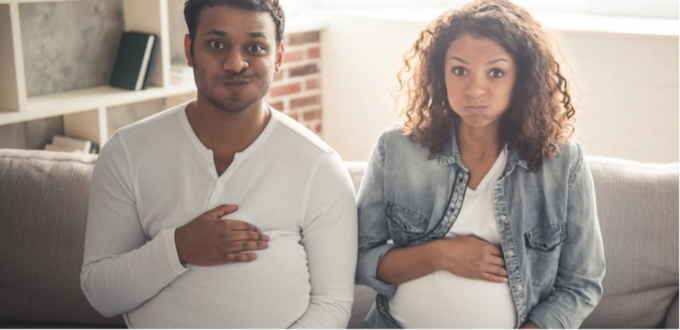 وأظهرت الدراسات أن الشريك الذكر الذي يتعايش مع أنثى حامل سيشهد تحولات هرمونية في مستويات البرولاكتين والكورتيزول والإستراديول والتستوستيرون، والتي تبدأ عادةً في نهاية الأشهر الثلاثة الأولى من الحمل وتستمر حتى عدة أسابيع بعد الولادة.