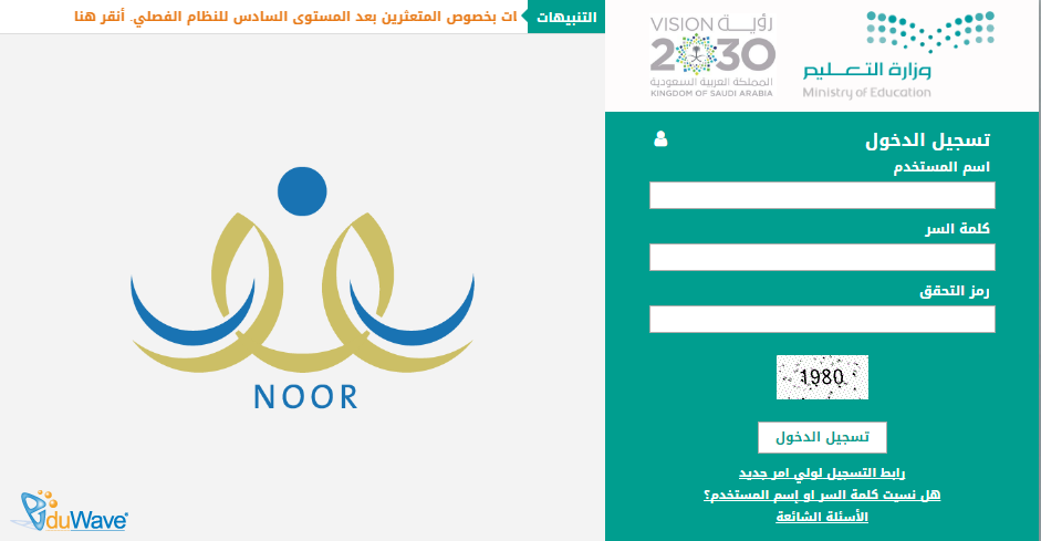 موقع نظام نور تسجيل طلاب الصف الاول الابتدائي