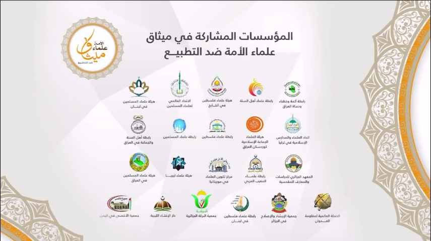 ميثاق علماء الأمة: التطبيع تنازل عن فلسطين وتضييع لعقيدة تحرير الأقصى وتهويد للمقدسات وتغيير لولاء المسلمين