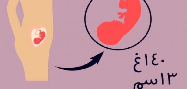 - يكون طول الجنين بين 13 إلى 14سم، ووزنه حوالي 5 أونصات.