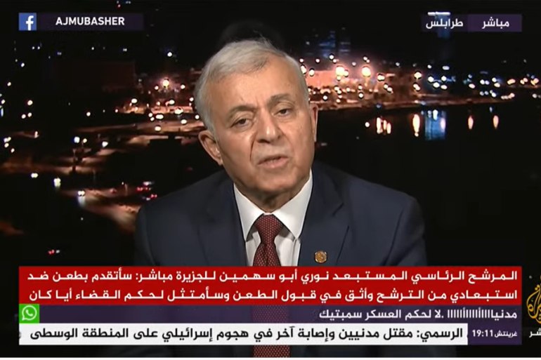 وأوضح في حديث لبرنامج المسائية على شاشة الجزيرة مباشر، الأربعاء، أنه “يحسن الظن بالغير ويحترم مؤسسات الدولة”، لافتا إلى أن رفض قبول ترشحه يأتي بسبب “عدم تطابق المادة 10 البند السابع، ومضمونه أنه لديه حكم سابق يمنع ترشحه”.