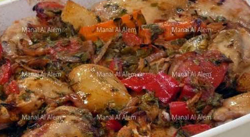 المقادير لتحضير الدجاج بالثوم والخضراوات