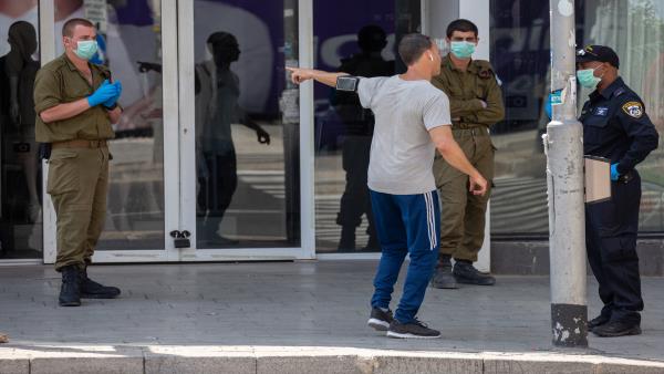 ووفقا للتقارير الإعلامية، فإن مئات الجنود (ما لا يقل عن 1700 جندي) منخرطون منذ مطلع الأسبوع في مساعي سلطات الاحتلال الإسرائيلي لتطبيق أوامر الحجر الصحي، ومنع الخروج من البيت إلا للحالات الطارئة، مثل التزود بالغذاء أو شراء الدواء.
